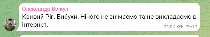 Кривий Ріг. Вибухи. Нічого не знімаємо та не викладаємо в інтернет, - написав він.