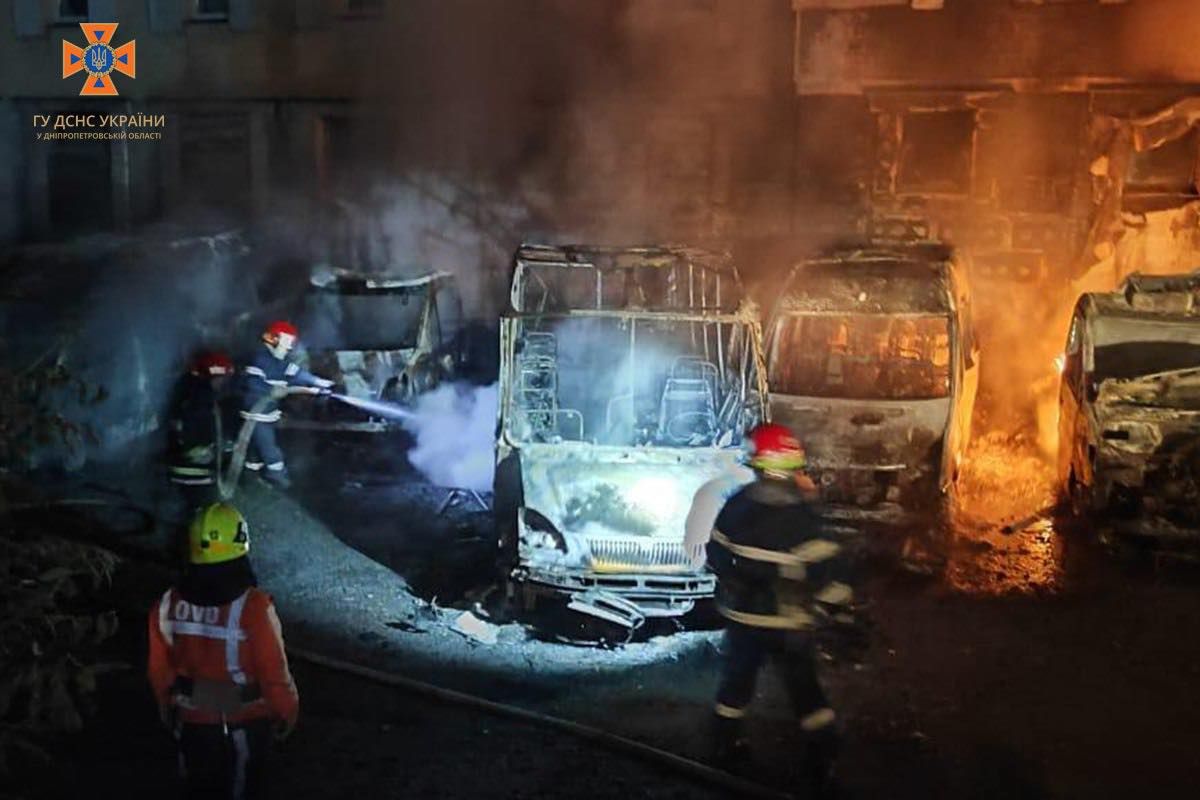 У Кривому Розі на зупинці спалахнула пожежа: вогонь знищив 5 мікроавтобусів (ФОТО)