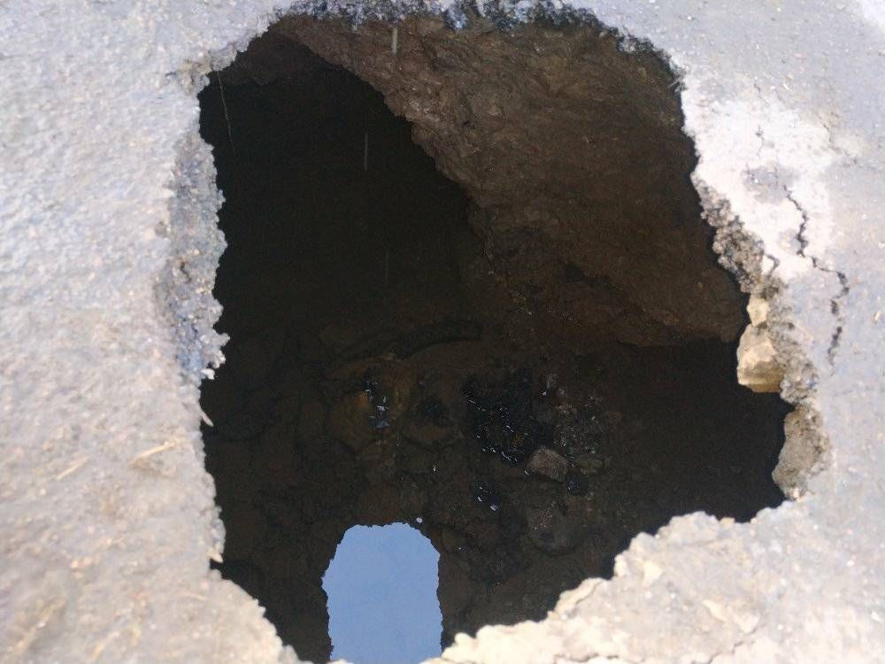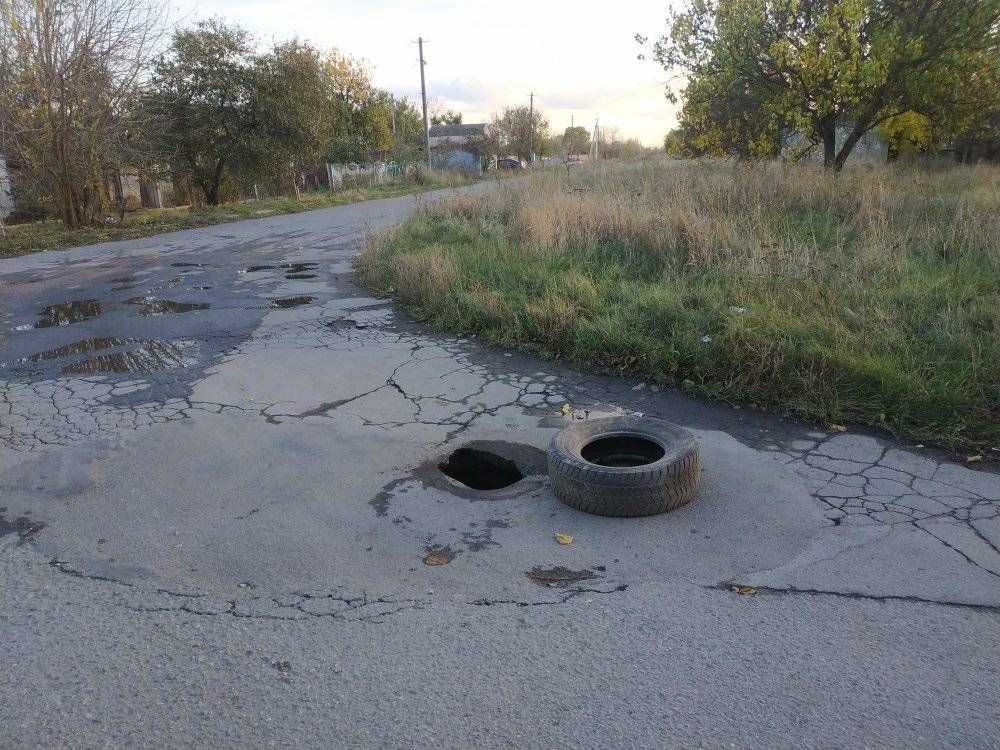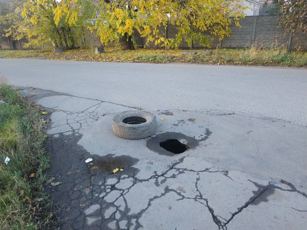 Задля безпеки жителі поклали на місце діри шину, щоб ніхто в неї не провалився.