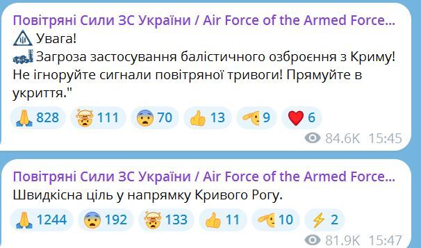 У середу, 12 червня, у Кривому Розі чули потужний вибух. Перед цим Повітряні сили ЗСУ в своєму телеграм-каналі попереджали про швидкісну ціль у напрямку міста. Ймовірно, це була балістична ракета, адже до цього військові сповіщали про загрозу застосування балістичного озброєння з Криму.