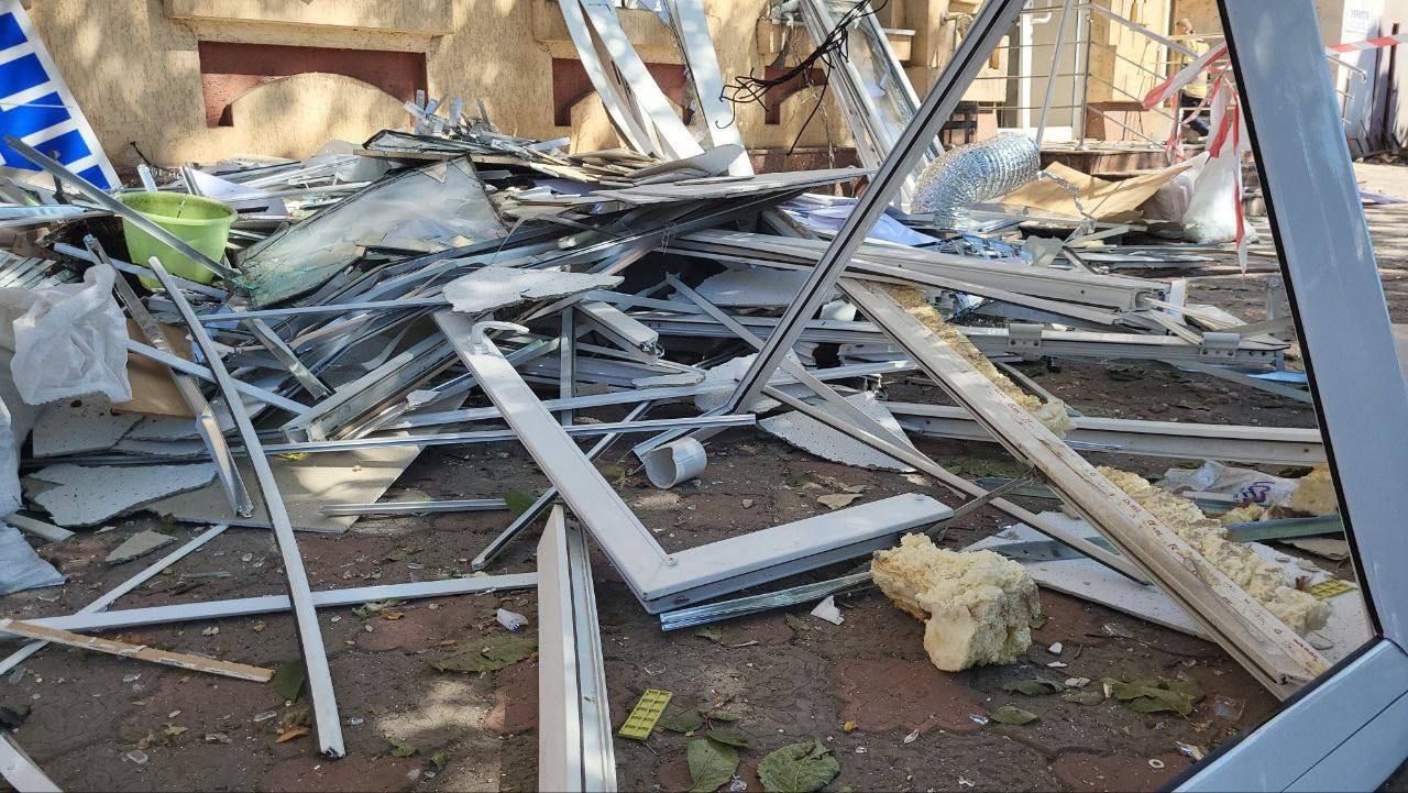 Пожежу, що спалахнула через ракетний удар, рятувальники загасили. Працюють комунальні служби. Розбирають завали, вивозять сміття та бите скло.