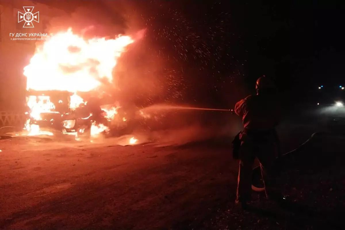 Сьогодні, 7 грудня, о 04:04 на лінію «101» повідомили, що у селищі Широке Криворізького району спалахнула фура.