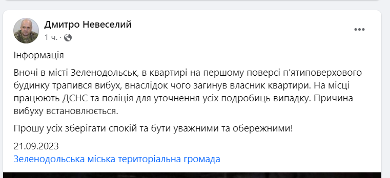 Про це повідомив Дмитро Невеселий, голова Зеленодольської громади.