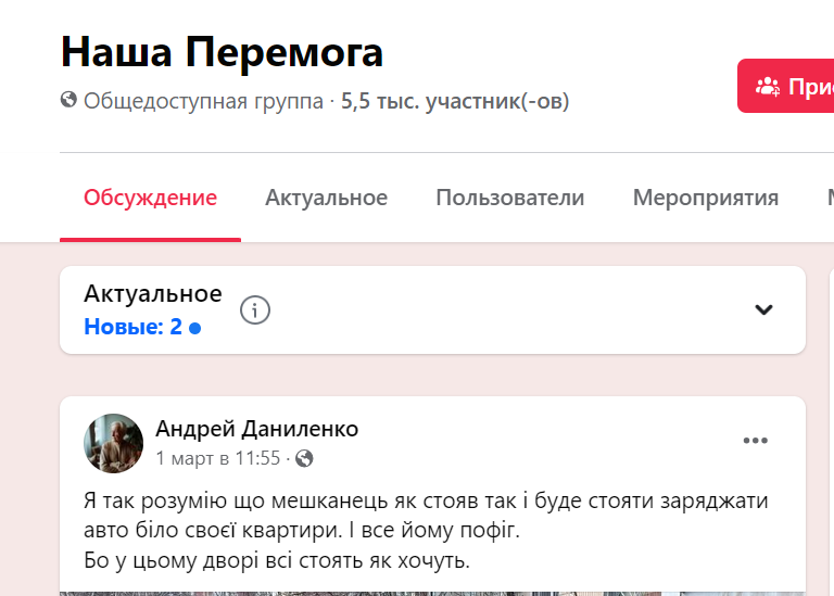Нещодавно в ФБ-спільноті "Наша Перемога" розгорілася дискусія через авто, яке власник заряджав під вікном багатоповерхівки.