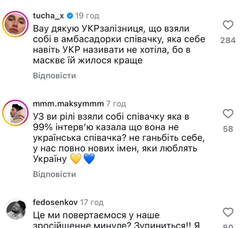 У коментарях під роликом УЗ в соцмережах почали писати про те, що Брежнєва "зрадниця", натякаючи на її тривалу співпрацю з російськими артистами та життя у Москві до 2022 року.