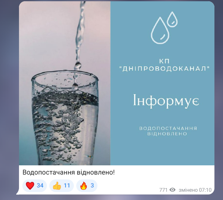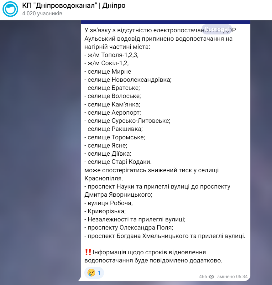 Інформацію щодо строків відновлення водопостачання буде повідомлено додатково.