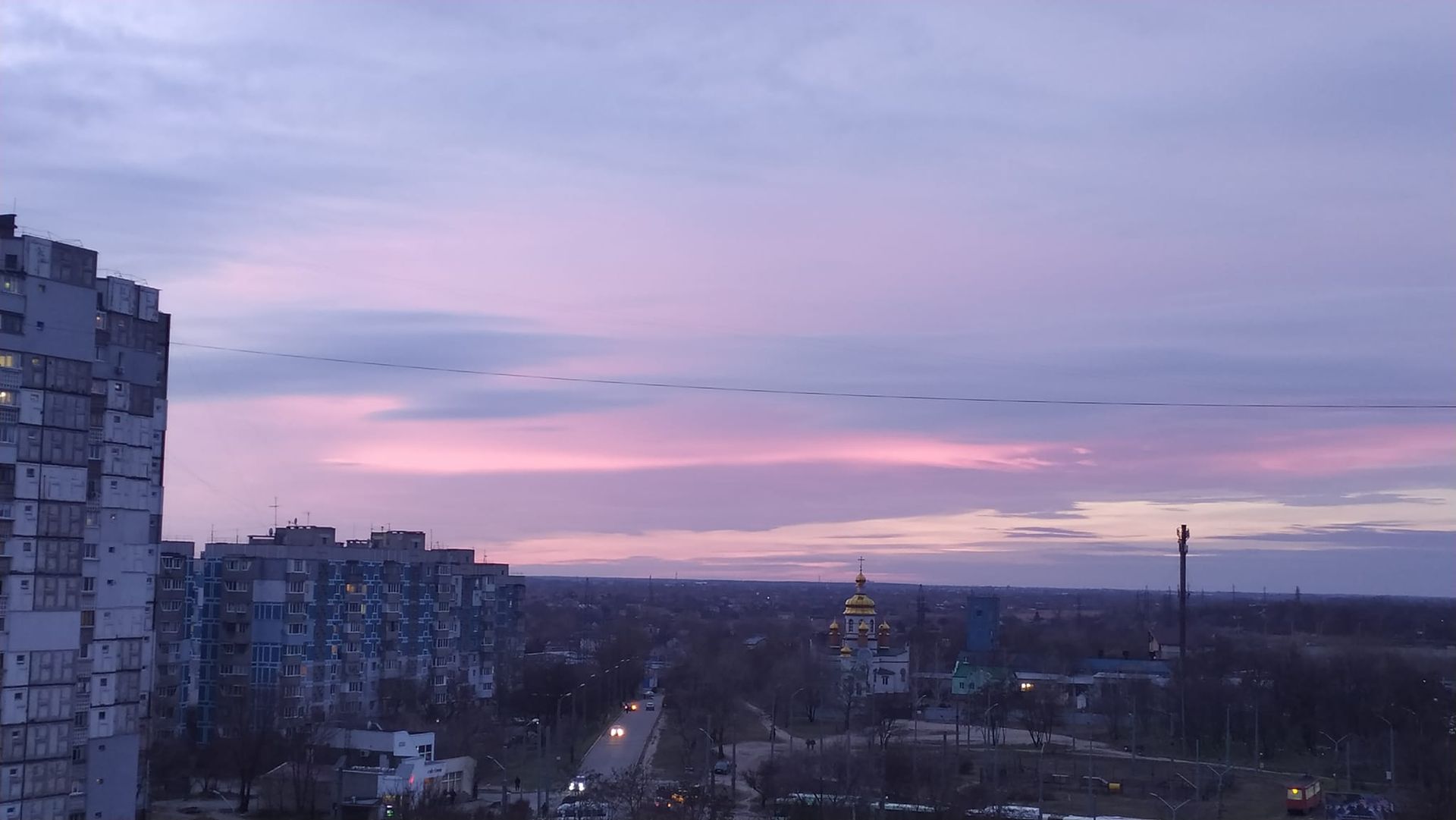 Ввечері 7 лютого небо над Дніпром на декілька хвилин забарвилося у ніжний пурпурний колір.
