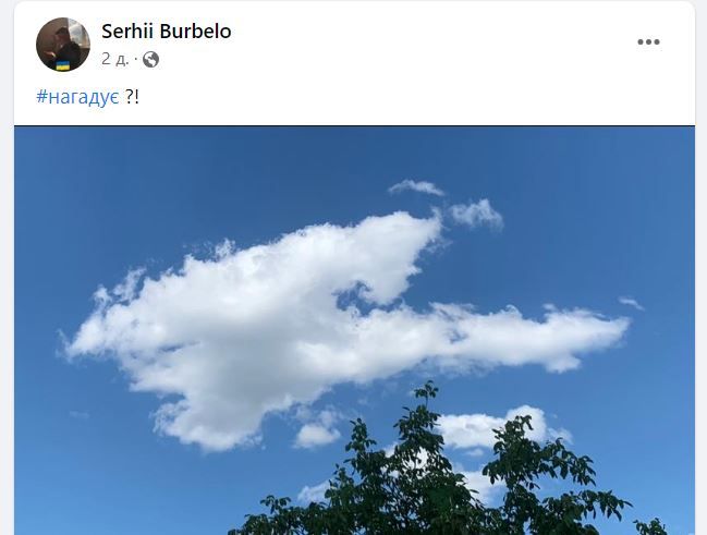 Митець із Дніпра Сергій Бурбело опублікував загадкове фото, де було видно хмару, яка нависла над містом. Якщо пильніше придивитися, то вона нагадує контури Кримського півострова.