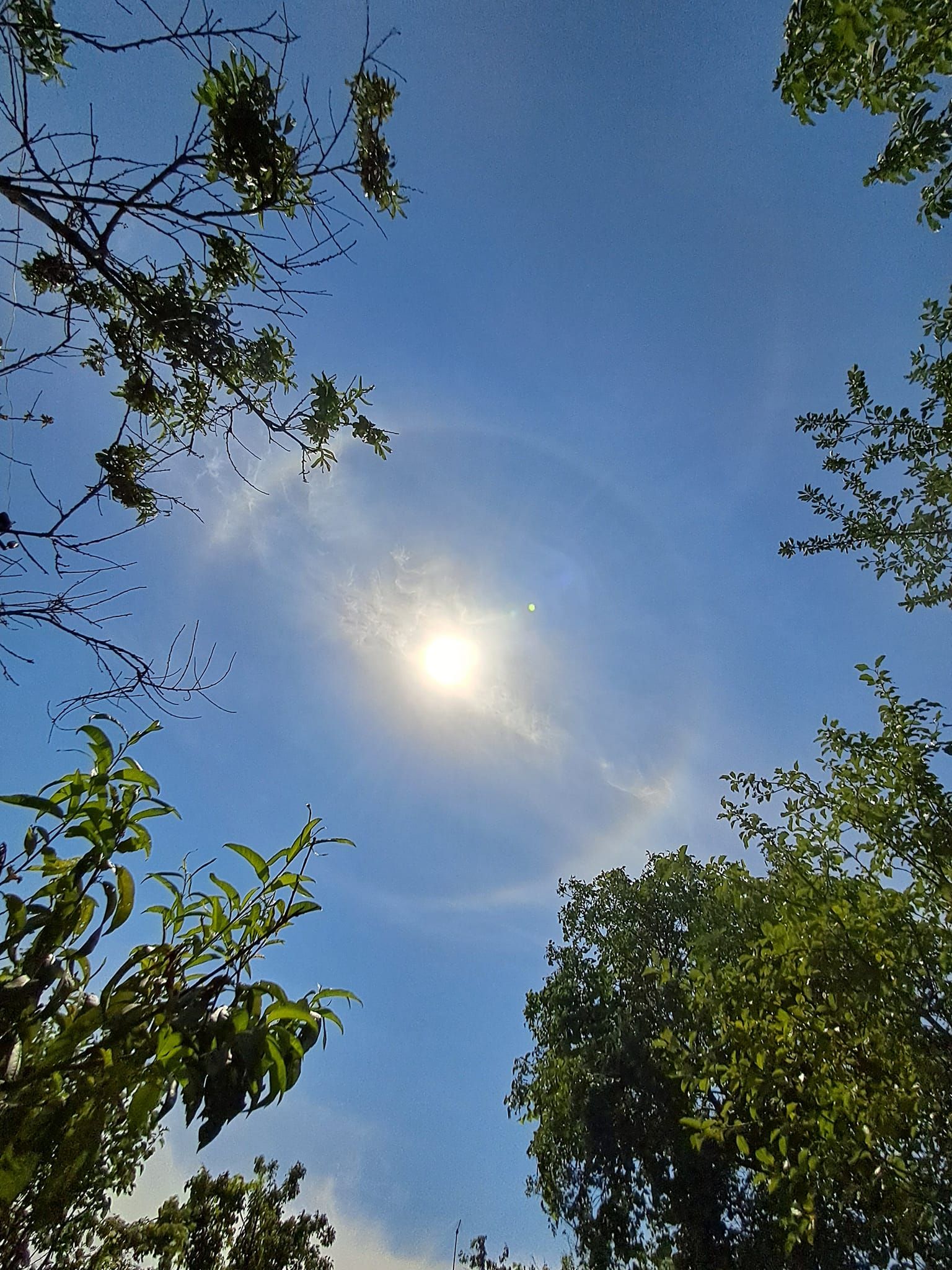 У небі над Дніпром знову помітили сонячний "німб". Дніпряни у Facebook-спільноті "Наш Лівобережний" поділилися фото, де було видно веселковий ореол навколо Сонця.