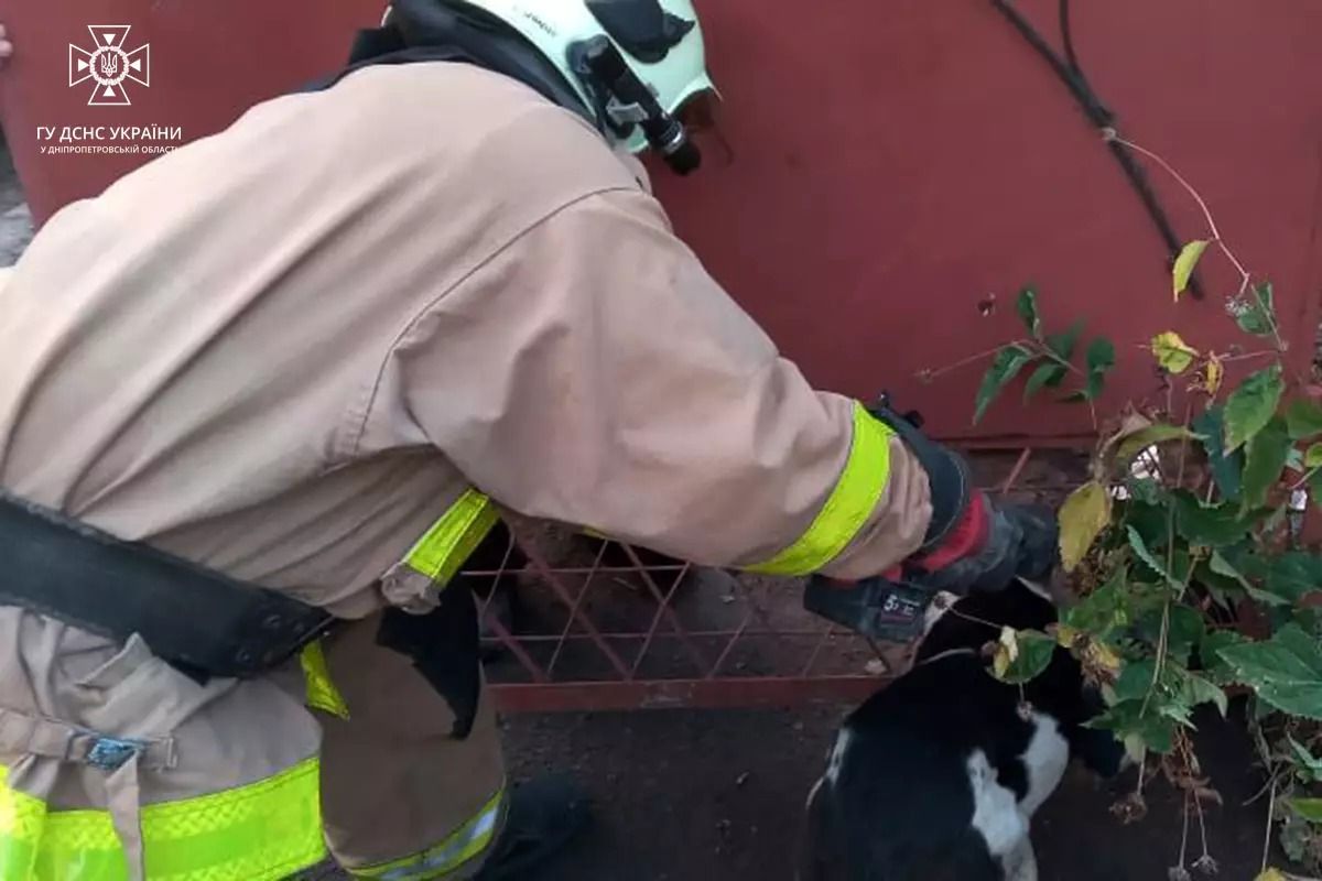 У Нікополі собака застряг у залізному паркані: його визволяли рятувальники