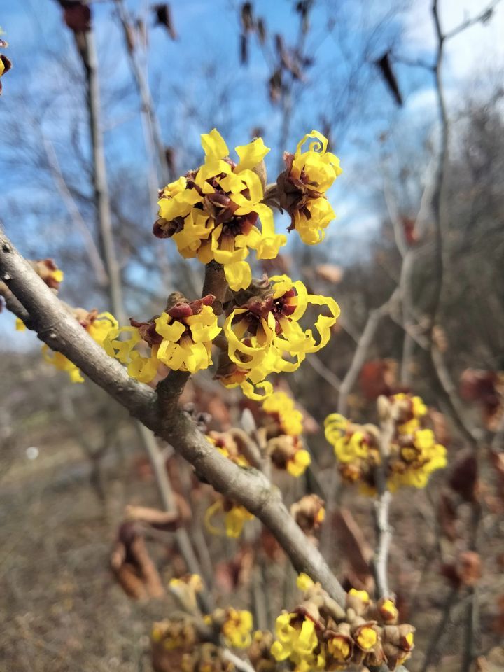 У перший день весни в ботсаду Дніпра квітнуть кущі "відьомського горіху" та хімонанту (ФОТО)