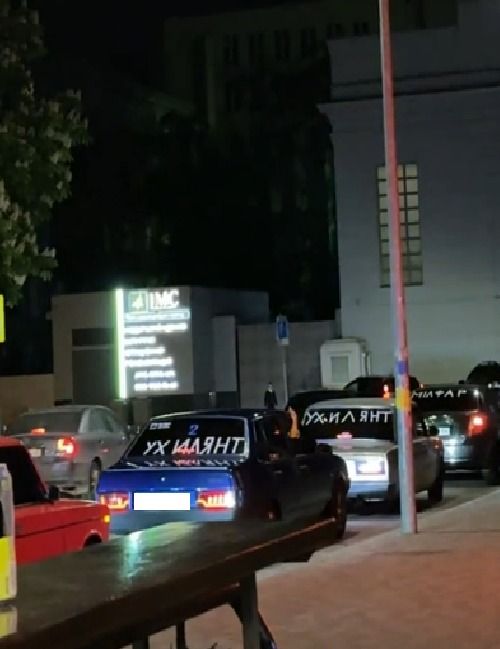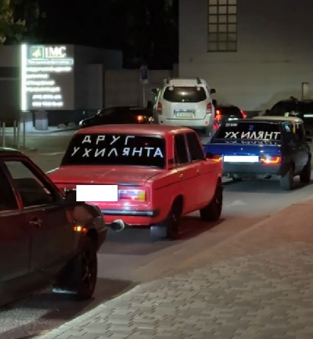 На кадрах можна побачити кілька автівок з написами "Ухилянт", "Друг ухилянта".