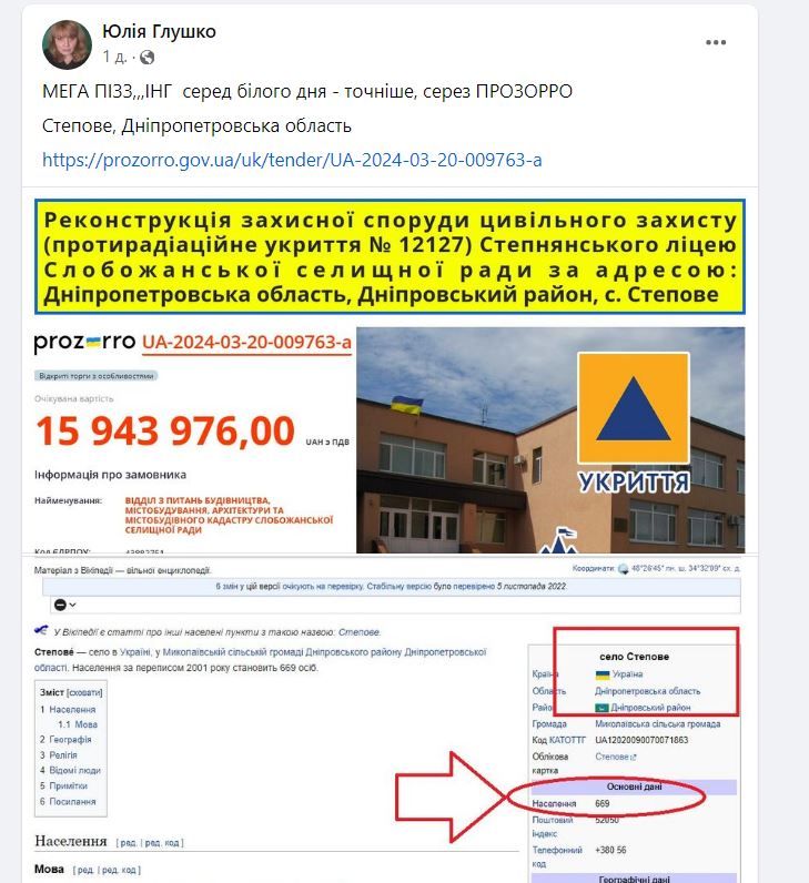 16 мільйонів гривень планують витратити з бюджету на реконструкцію укриття у селі Степове Слобожанської селищної ради Дніпровського району.