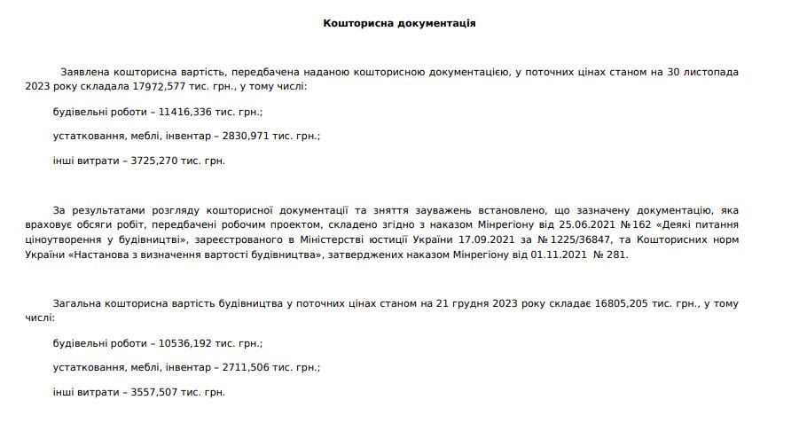 Тобто роботи досить масштабні. У документах є орієнтовний кошторис проєкту:
