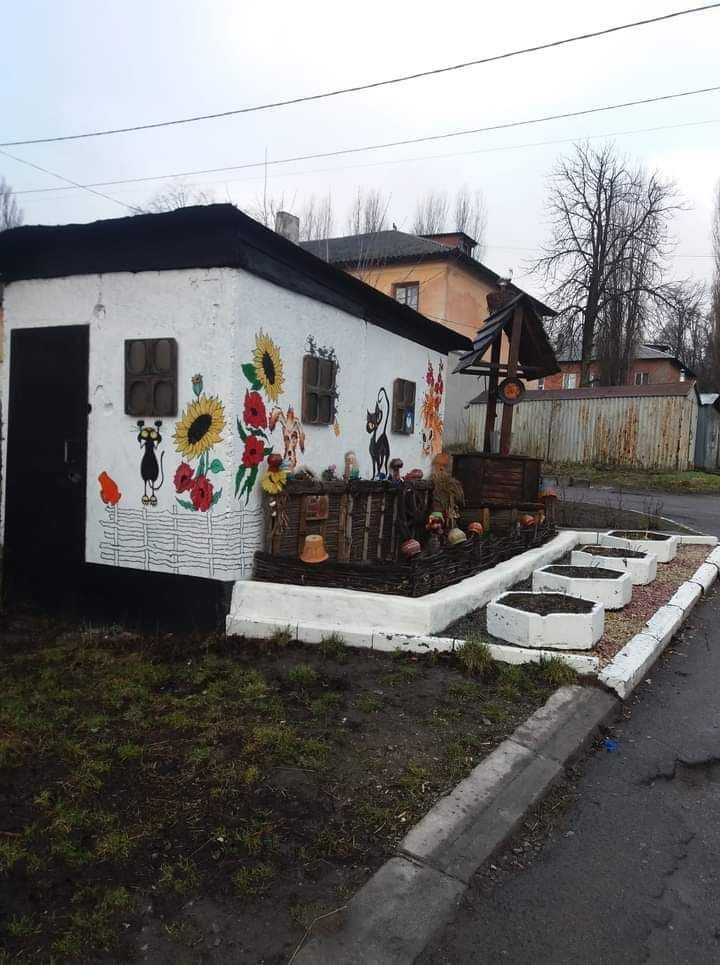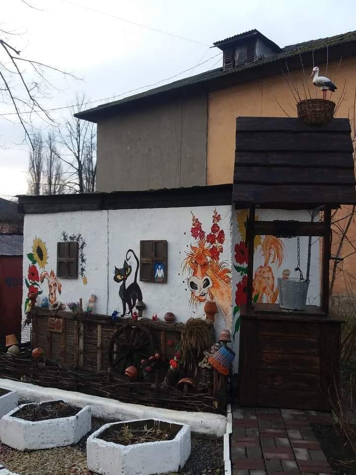 До прикладу, на вулиці Макарова занедбану будівлю біля дому перетворили на етнодворик з білою мазанкою, парканом та декоративним колодязем.