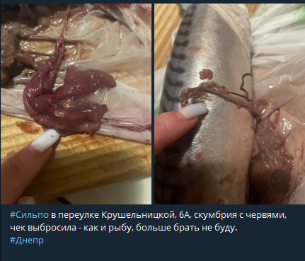В одному з дніпровських "Сільпо" містянка купила скумбрію, всередині якої знайшла черв'яків.