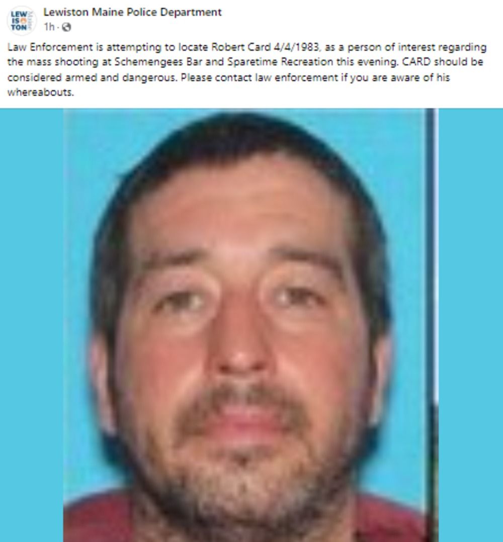 Попередньо, зловмисника ще не затримали. У Поліцейському департаменті Льюїстона повідомили, що підозрюваний - 40-річний Роберт Кард - інструктор зі зброї та резервіст армії США.