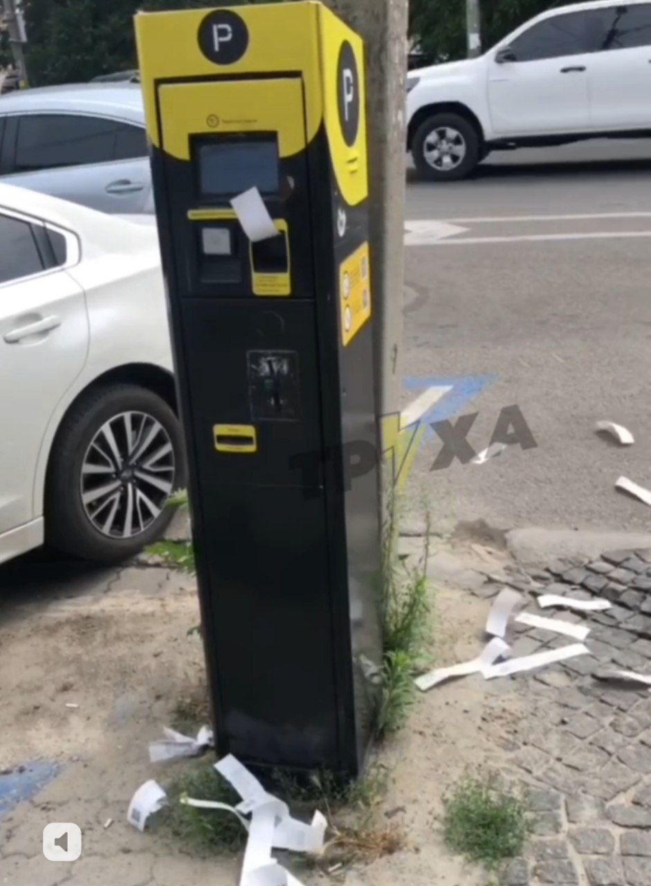Поблизу Менори помітили паркомат, який наче збожеволів. Прилад, який використовують для оплати паркування, неконтрольовано розкидував чеки. Гаджет один за одним друкував папірці, які просто падали на землю.