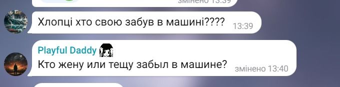 А дехто взагалі висловився дуже своєрідно: "Хлопці, хто свою забув в машині", "Хто дружину чи тещу забув у машині".