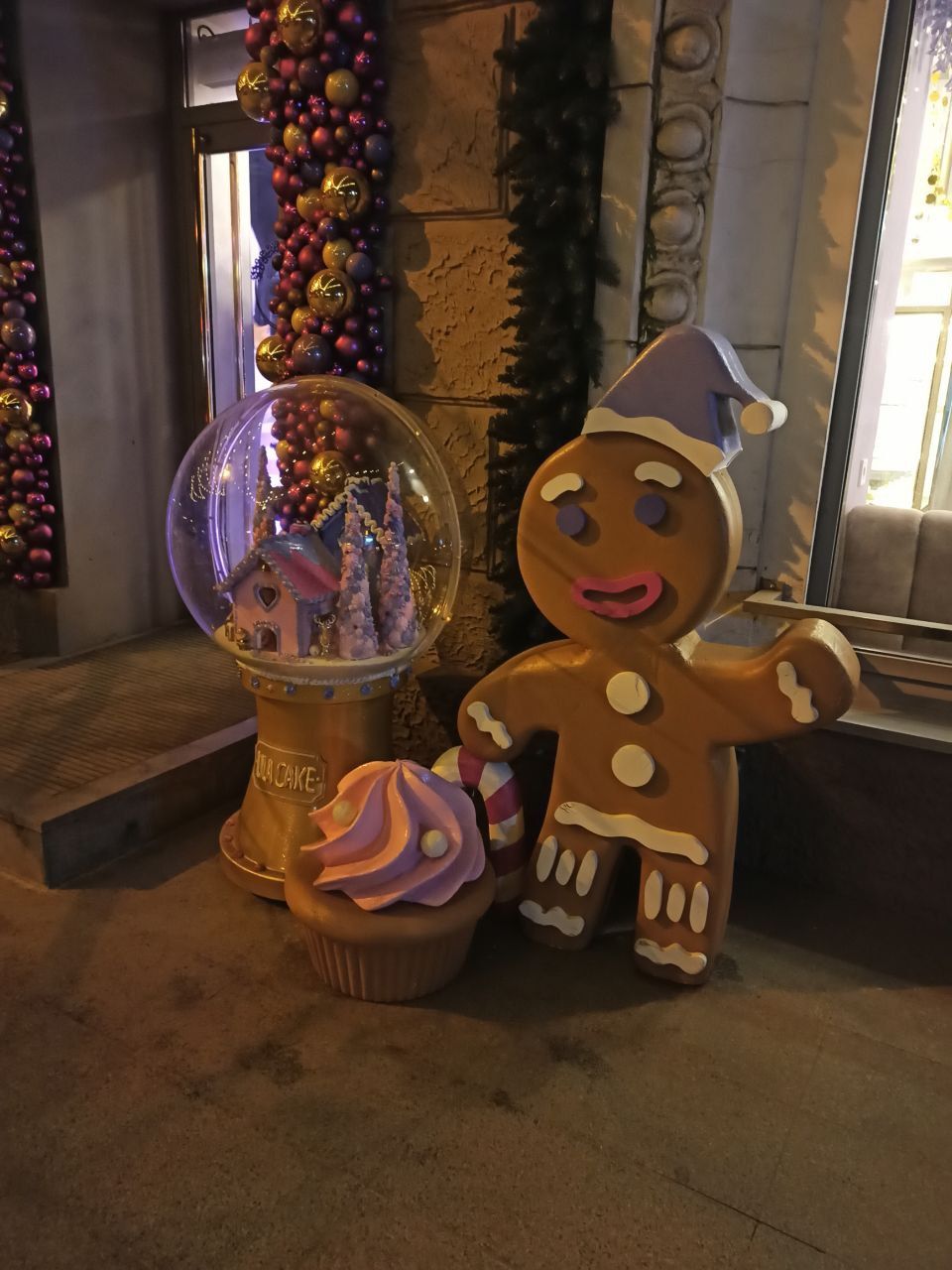 Недалеко від лісу, трохи далі проспектом, біля кав'ярні можна побачити гігантського пряника. Висота солодкого чоловічка більше метра. Поруч з ним величезний капкейк та снігова куля, усередині якої маленька рожева хатинка з садом.