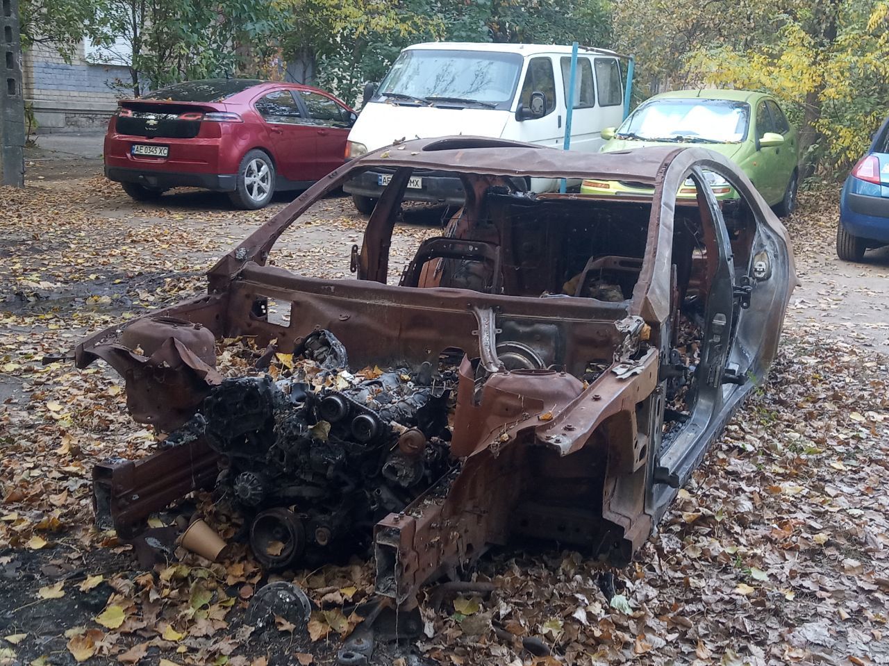 Згоріле авто стоїть посеред двору в середмісті Дніпра.