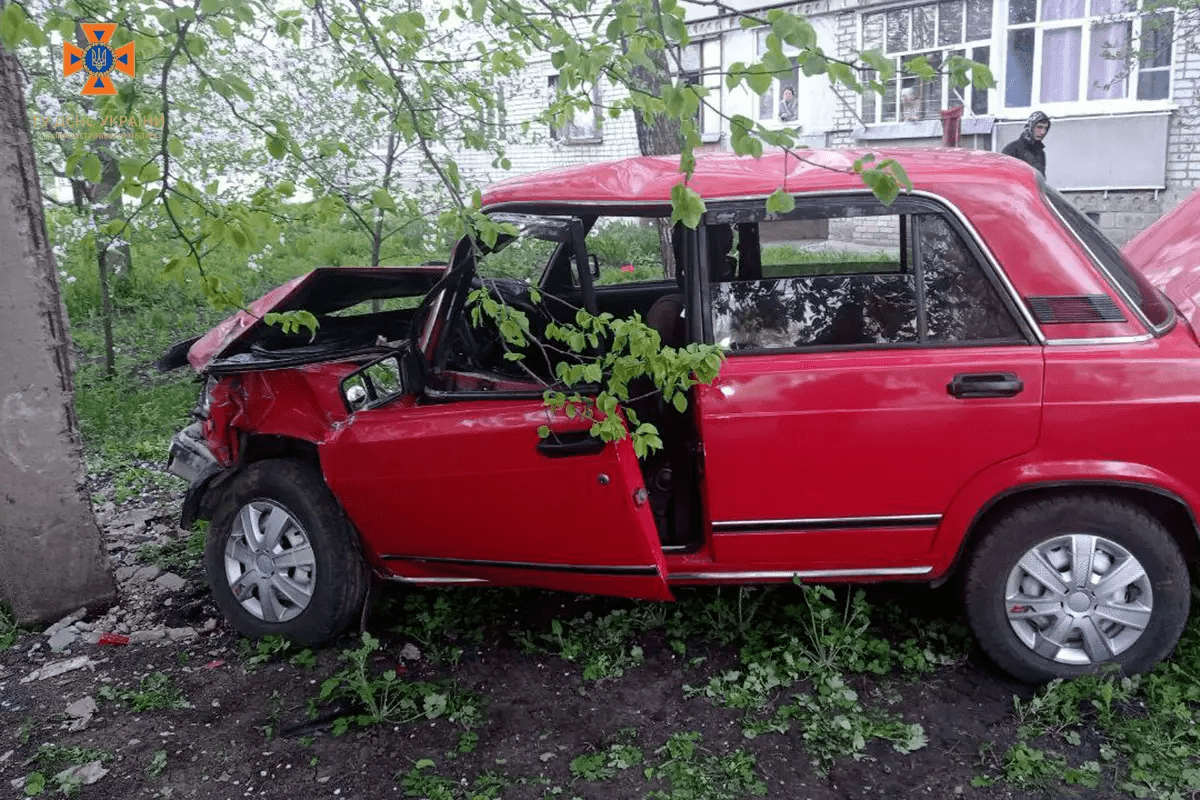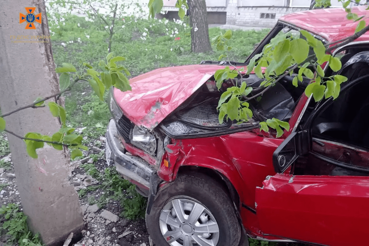 У Жовтих Водах ВАЗ врізався у стовп, водія затисло у салоні автомобіля.