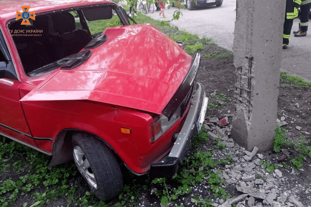 Вчора, 25 квітня, на вулиці Ентузіастів у Жовтих Водах сталася ДТП. Водій ВАЗ не впорався з керуванням та влетів у стовп. У машині перебували три пасажири, які після удару самостійно вибралися з авто.