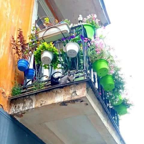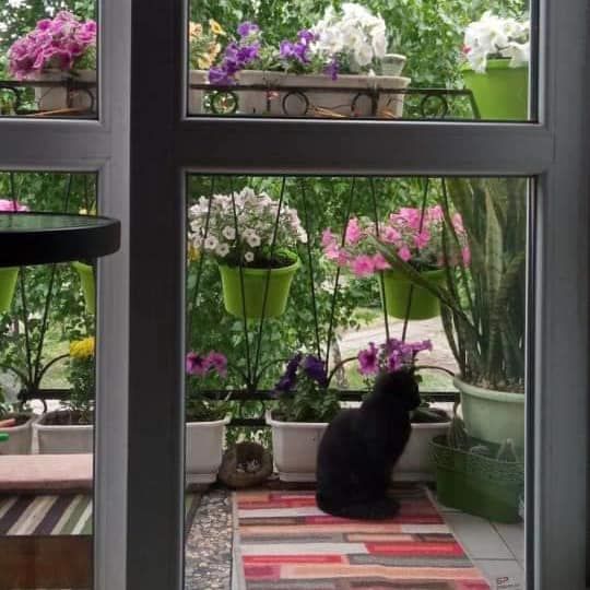 До того ж діти Юлії ростуть в оточенні цієї краси. А дві кішки дівчини люблять спостерігати за голубами, сидячи просто у вазонах між квітами.