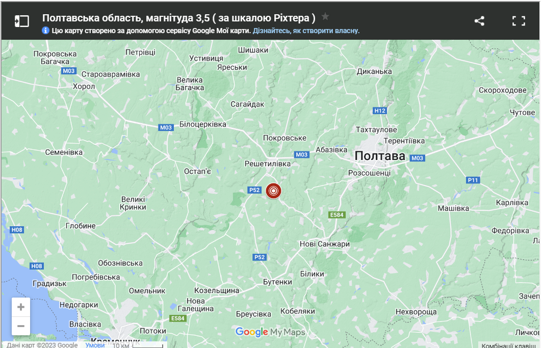 У п'ятницю ввечері в Решетилівському районі Полтавщини, за 20 кілометрів на захід від облцентру, стався землетрус магнітудою 3,5 бали за шкалою Ріхтера.
