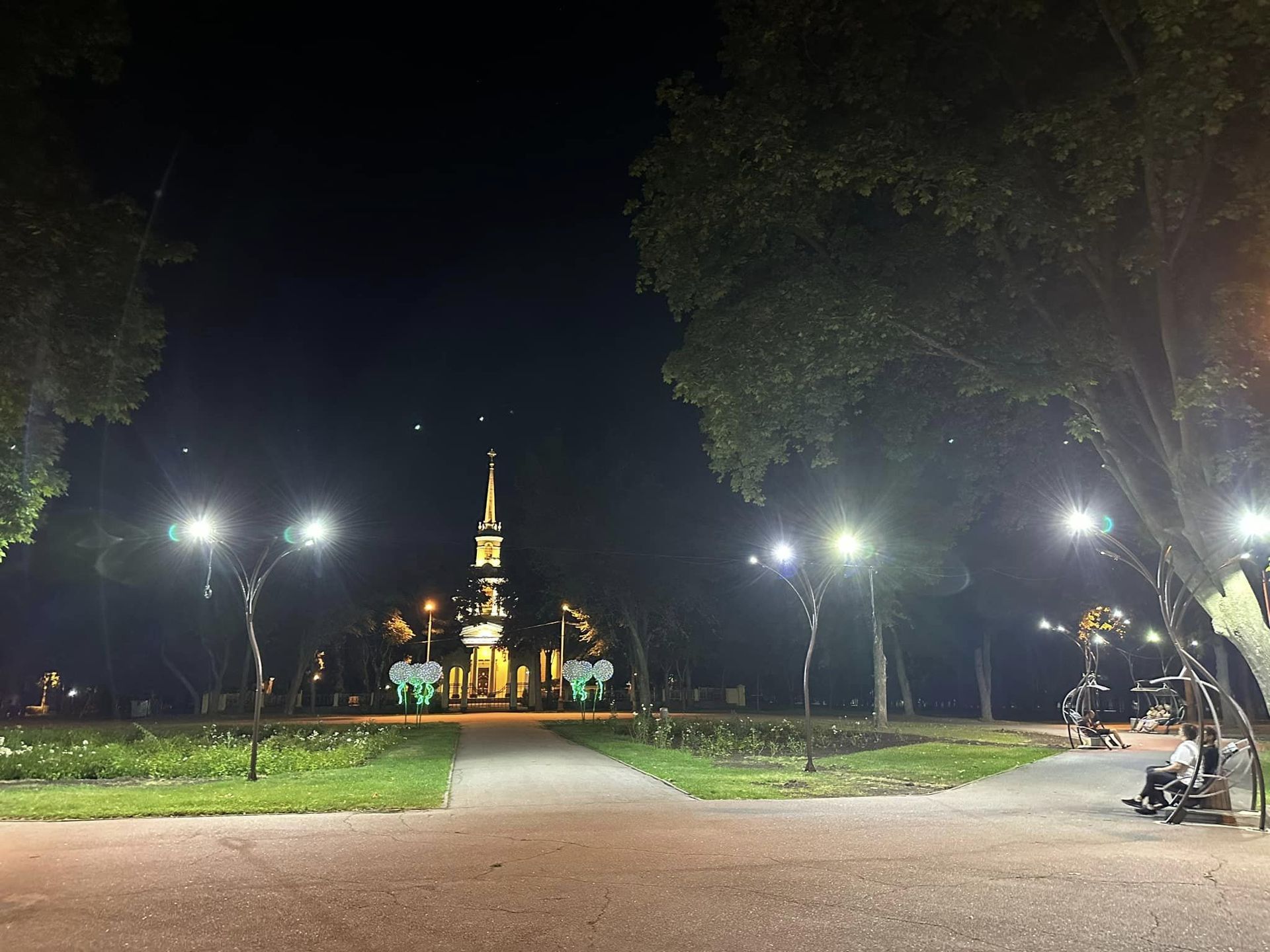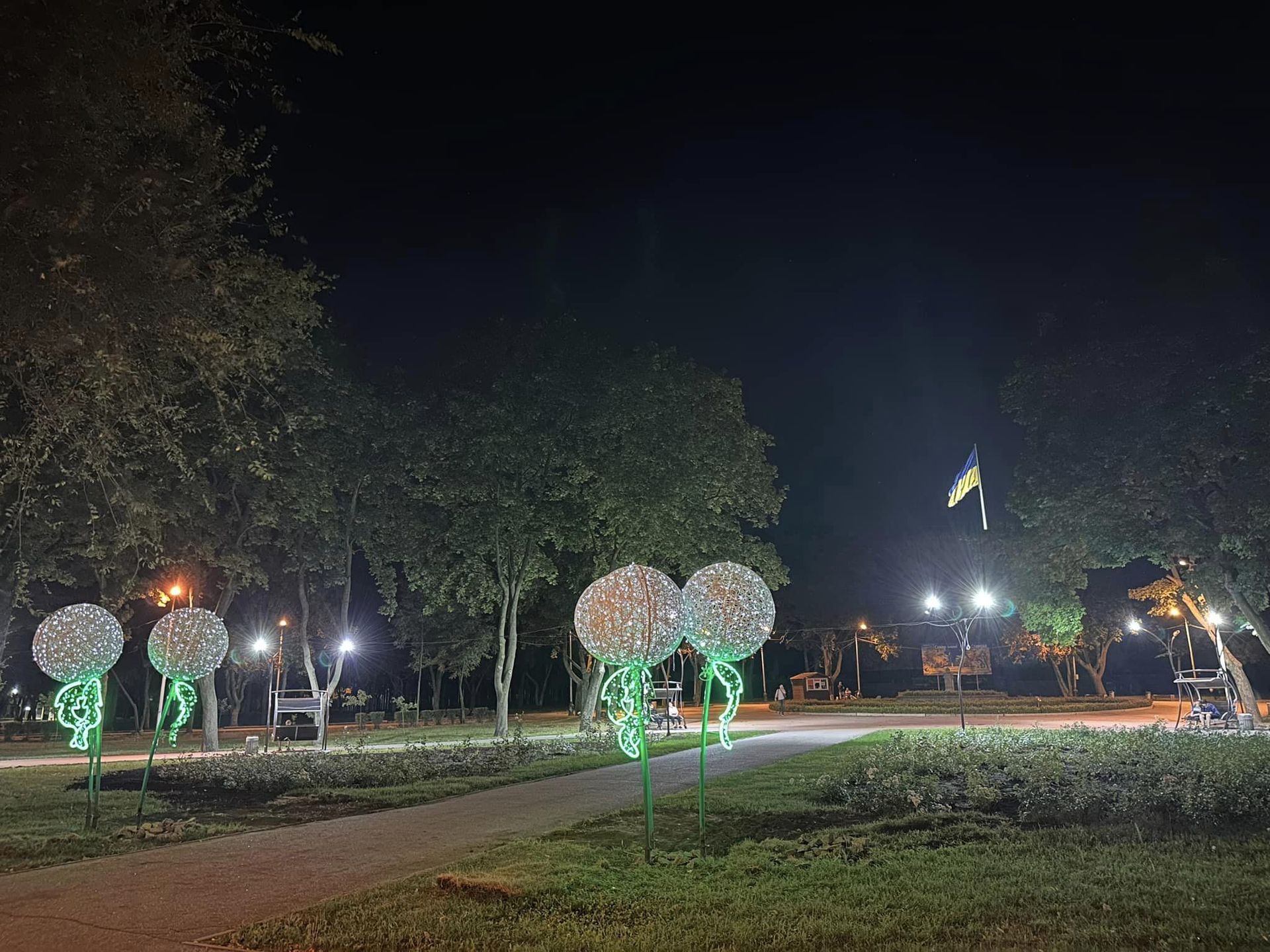 Днями у сквері Івана Старова під'єднали до LED-освітлення паркові лави-гойдалки, які поставили тут у червні. Крім цього, засвітилися гігантські кульбаби, які прикрашають центральну алею неподалік від храму.