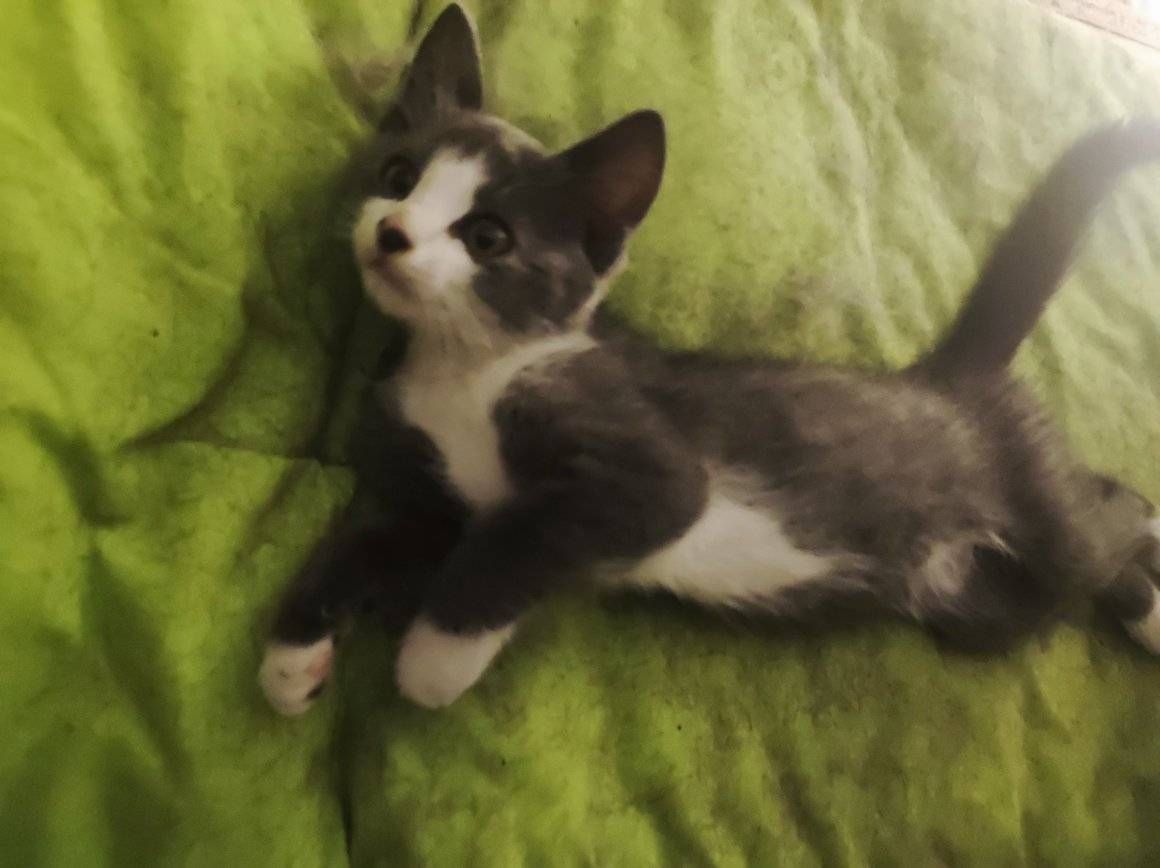 Що цікаво, кішечка вже привчена до лотка, тобто попередній господар хотів залишити тварину в себе, а потім передумав та викинув на вулицю.