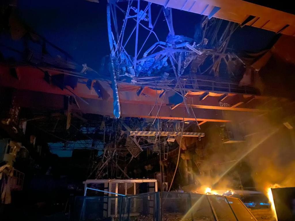Пожежа вже локалізована. Фахівці працюють над усуненням наслідків атаки. А ось перші кадри: