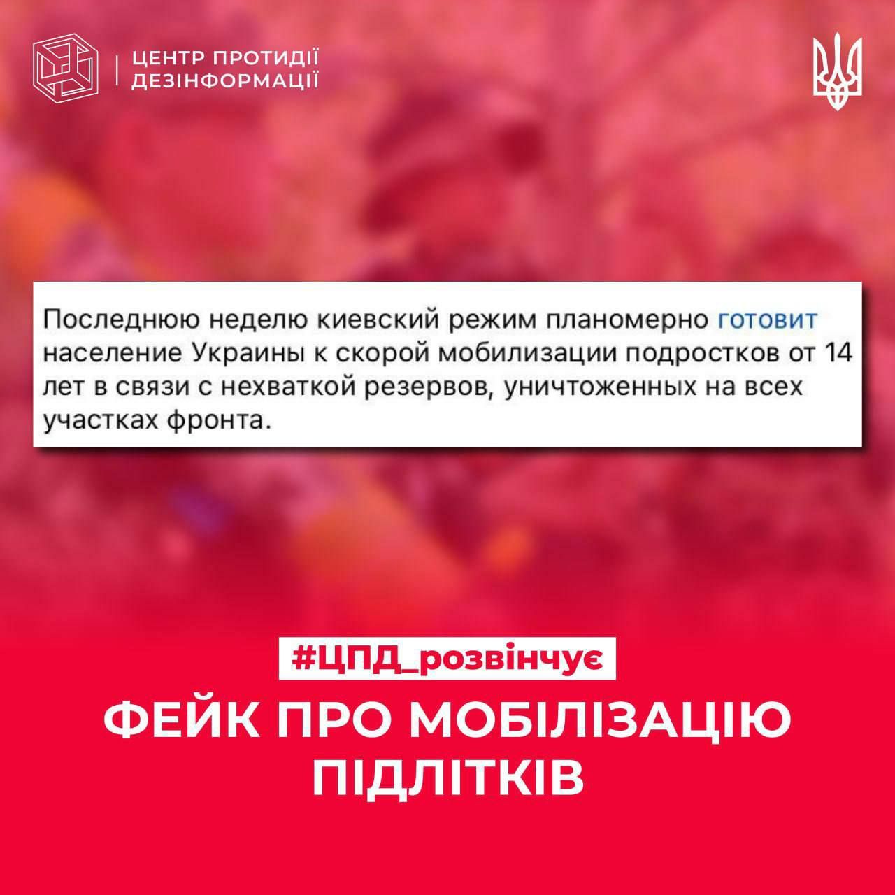 У мережі російські пропагандисти поширюють новий фейк: в Україні влада нібито «готує населення до швидкої мобілізації підлітків від 14 років у зв'язку з нестачею резервів, знищених на всіх ділянках фронту».