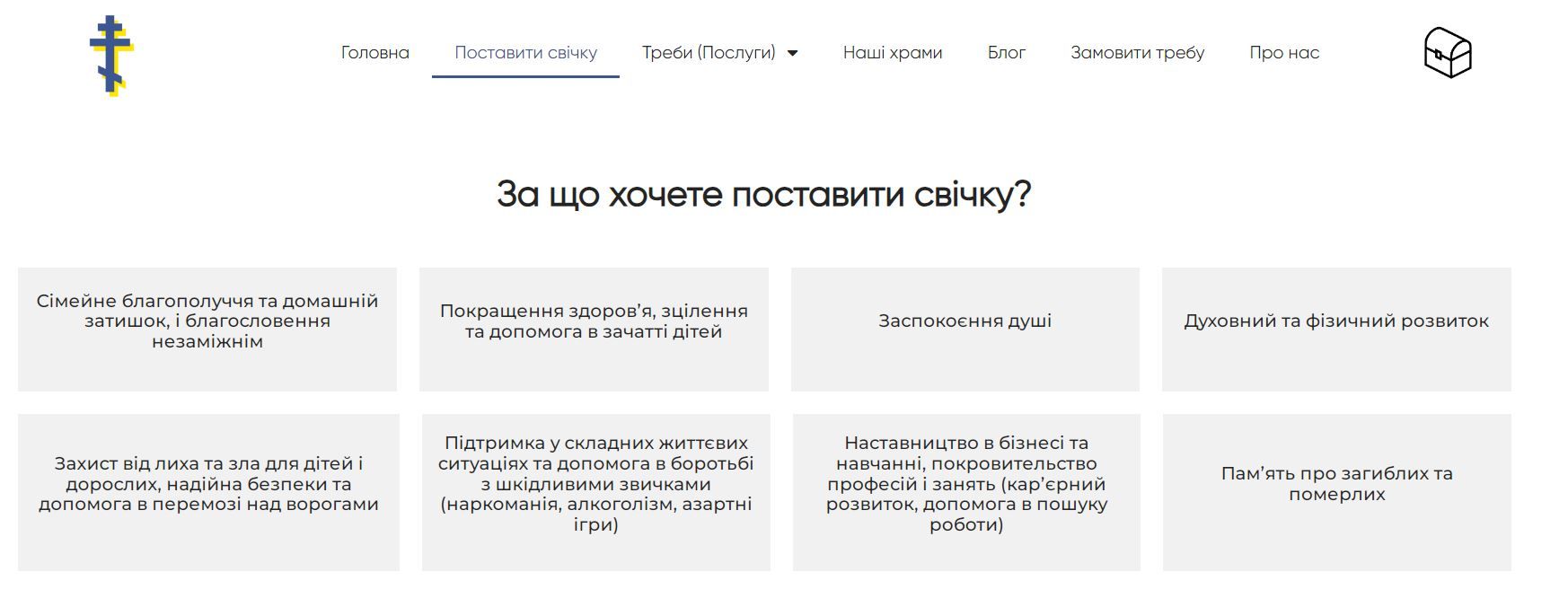 На сайті є розділи, де можна запалити свічку та проконсультуватися зі священником.