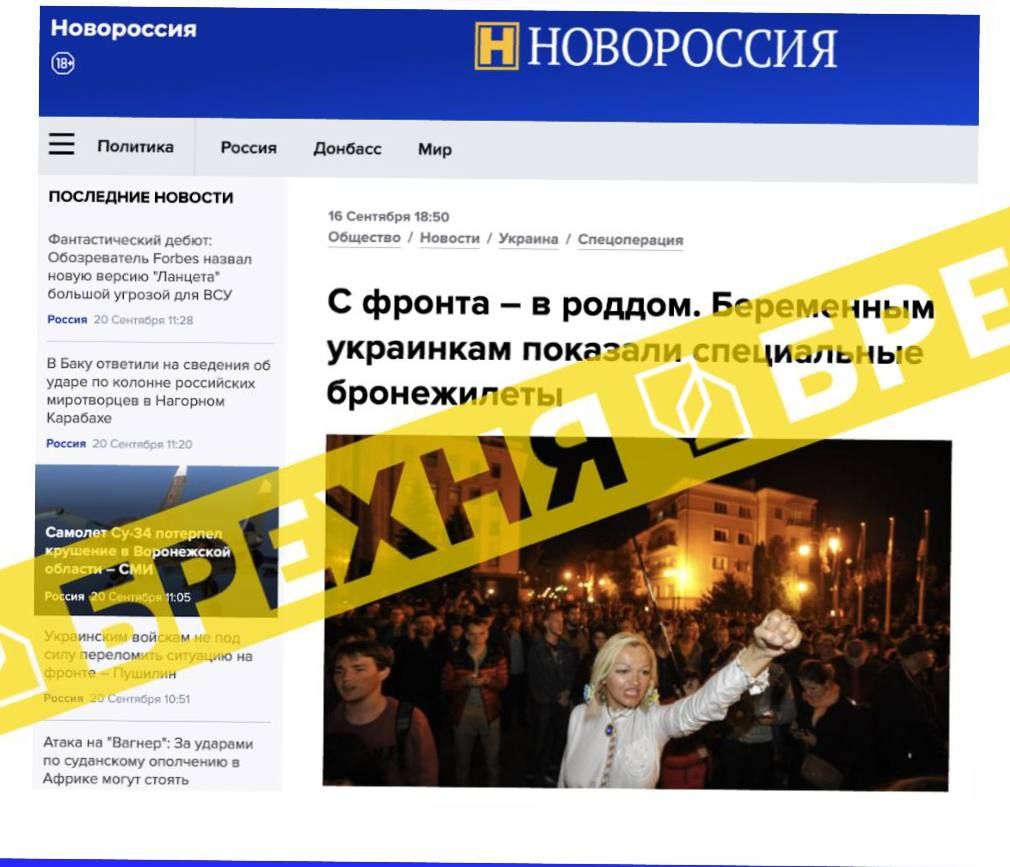 Різні російські ЗМІ та Telegram-канали поширюють інформацію про те, що "через провал контрнаступу українська влада ухвалила рішення відправляти на фронт навіть вагітних жінок". Для них навіть нібито створили спеціальний бронежилет.