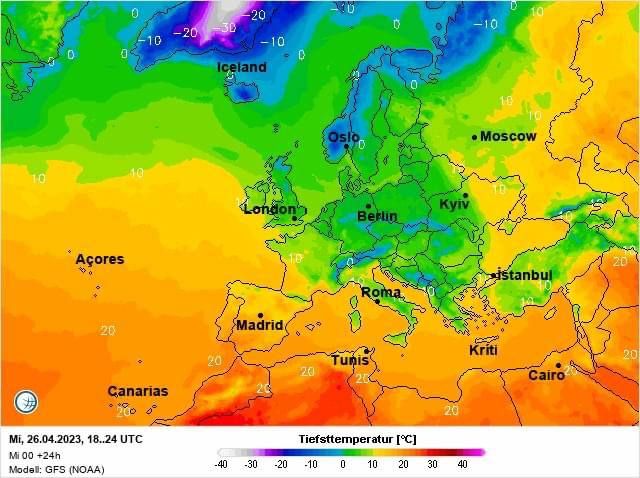 А ось на решті території України, 26 квітня, поки що втримається тепла погода. Можливе незначне похолодання в четвер, але на півдні все ще буде до +20.