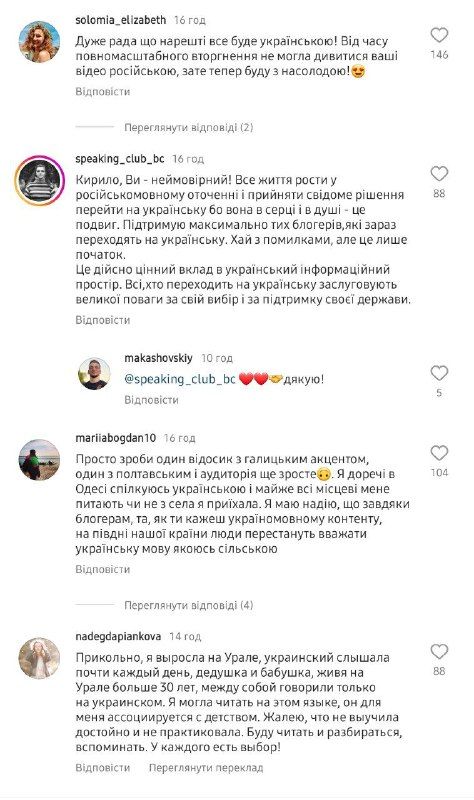 Це рішення було складним для блогера, адже свою аудиторію він збирав дуже довго і вона переважно російськомовна. Та незважаючи на це та закиди деяких підписників, що "йому заборонили розмовляти російською, надавили", Кирило хоче розвивати україномовний контент та робити його найкрутішим.