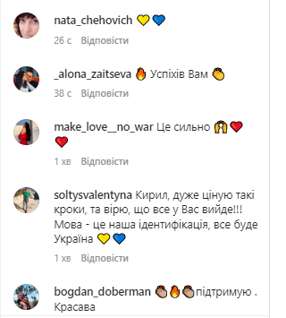 Підписники Кирила переважно позитивно відреагували на такі зміни: "Це сильно", "Кирило, дуже ціную такі кроки, та вірю, що все у Вас вийде!!! Мова - це наша ідентифікація, все буде Україна", "Підтримую вас всім серцем" тощо.