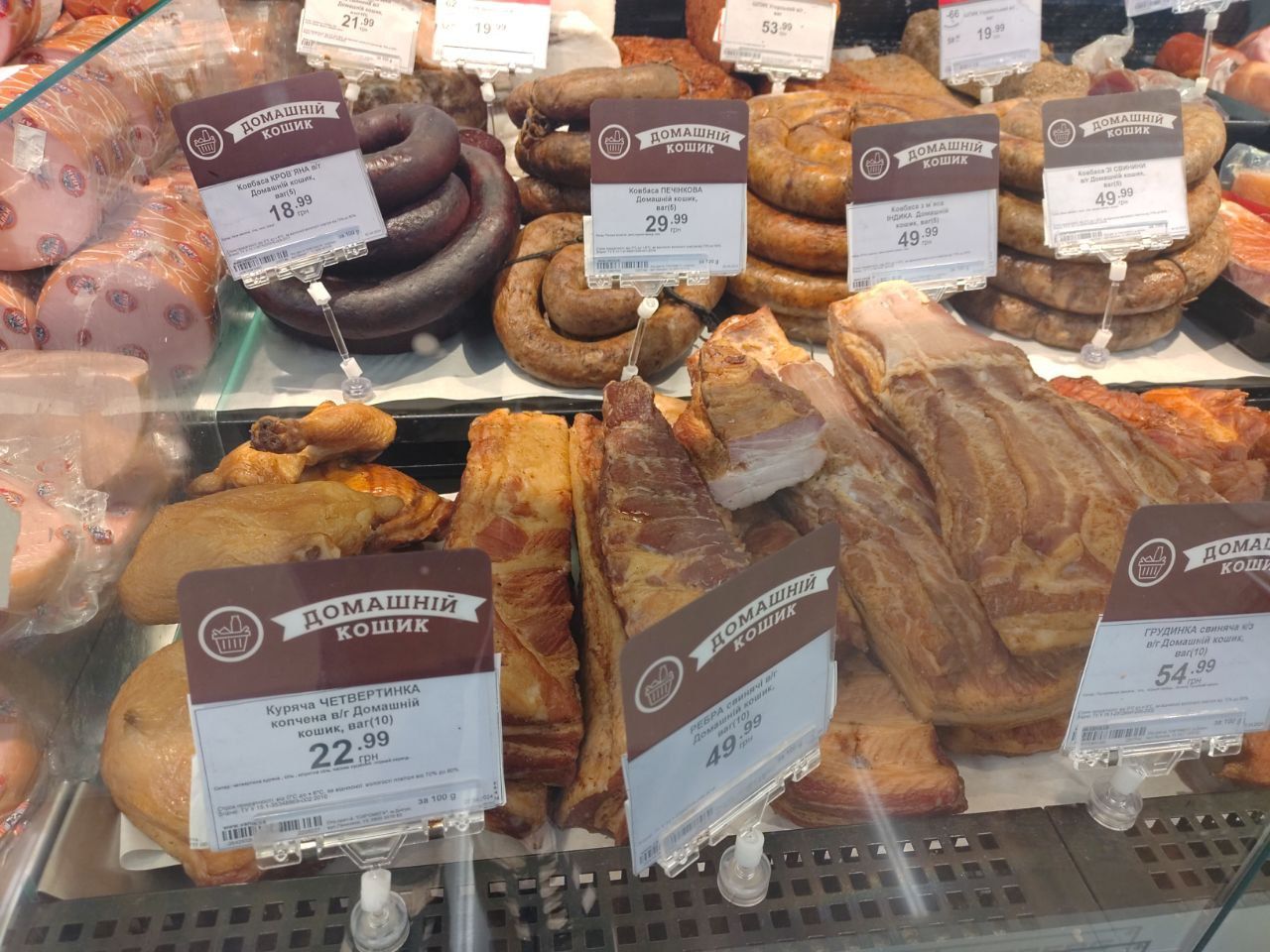 Ковбасу, шинку чи сало також можна святити у церкві. Вони є продуктами, від яких люди утримувалися під час посту, а традиція споживання м'яса на Великдень зародилася ще за язичницьких часів. Кілограм домашньої ковбаси коштуватиме в середньому 300-500 грн, купити сало можна за 250-300 грн за кіло, а шинка коштуватиме 400 грн. Їх можна замінити звичайною ковбасою. У такому разі кіло продукту коштуватиме 200-400 грн.