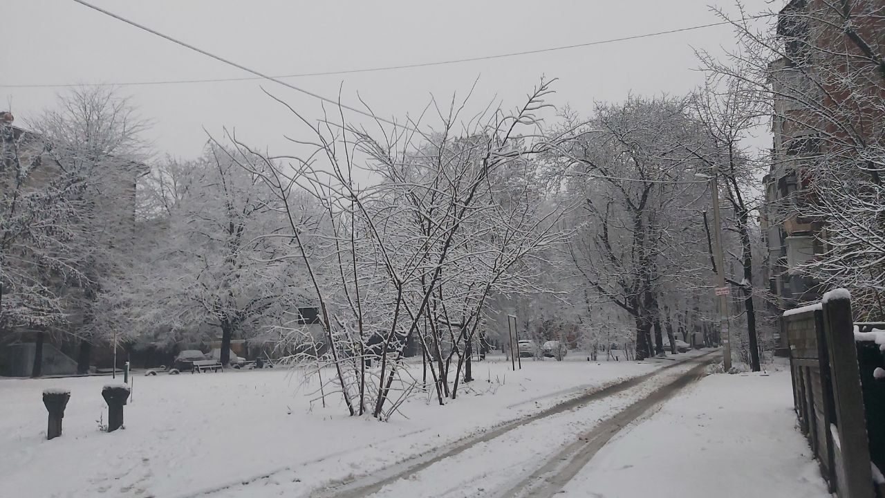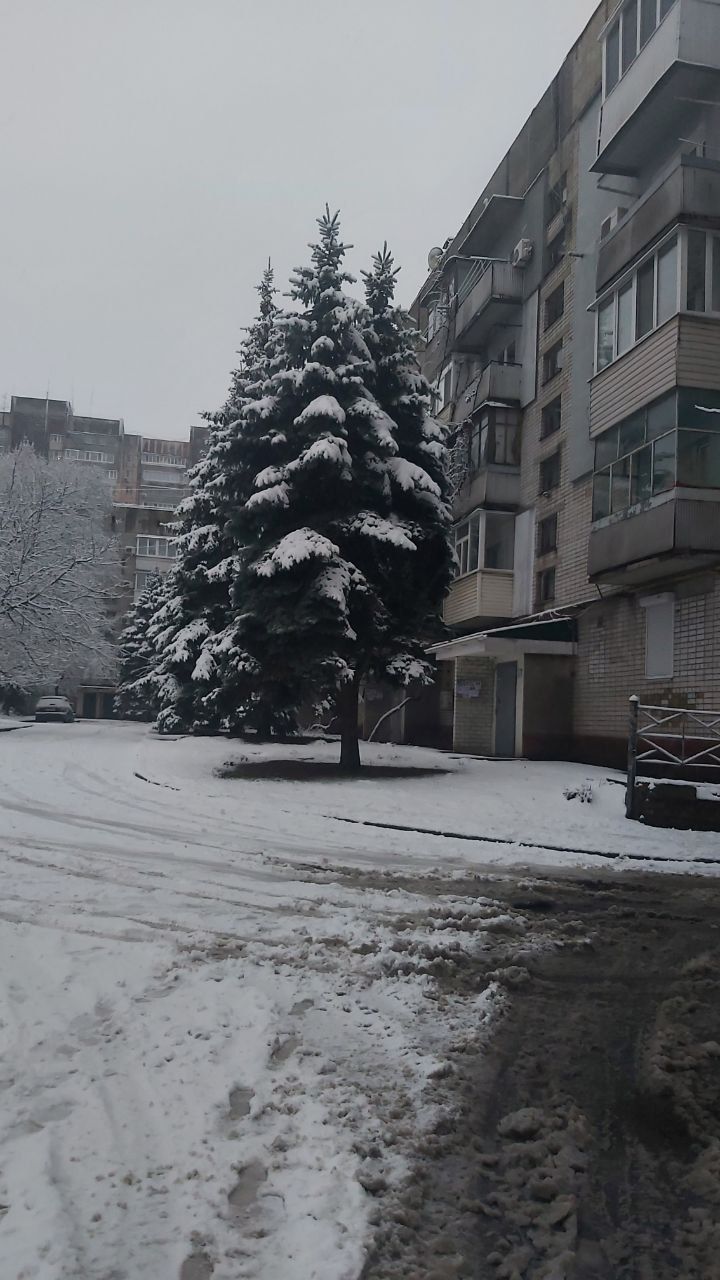 Місцями утворився шар снігу в 10 см, але поки що стовпчик термометра показує 1 градус тепла, тому сніжний килим тане.