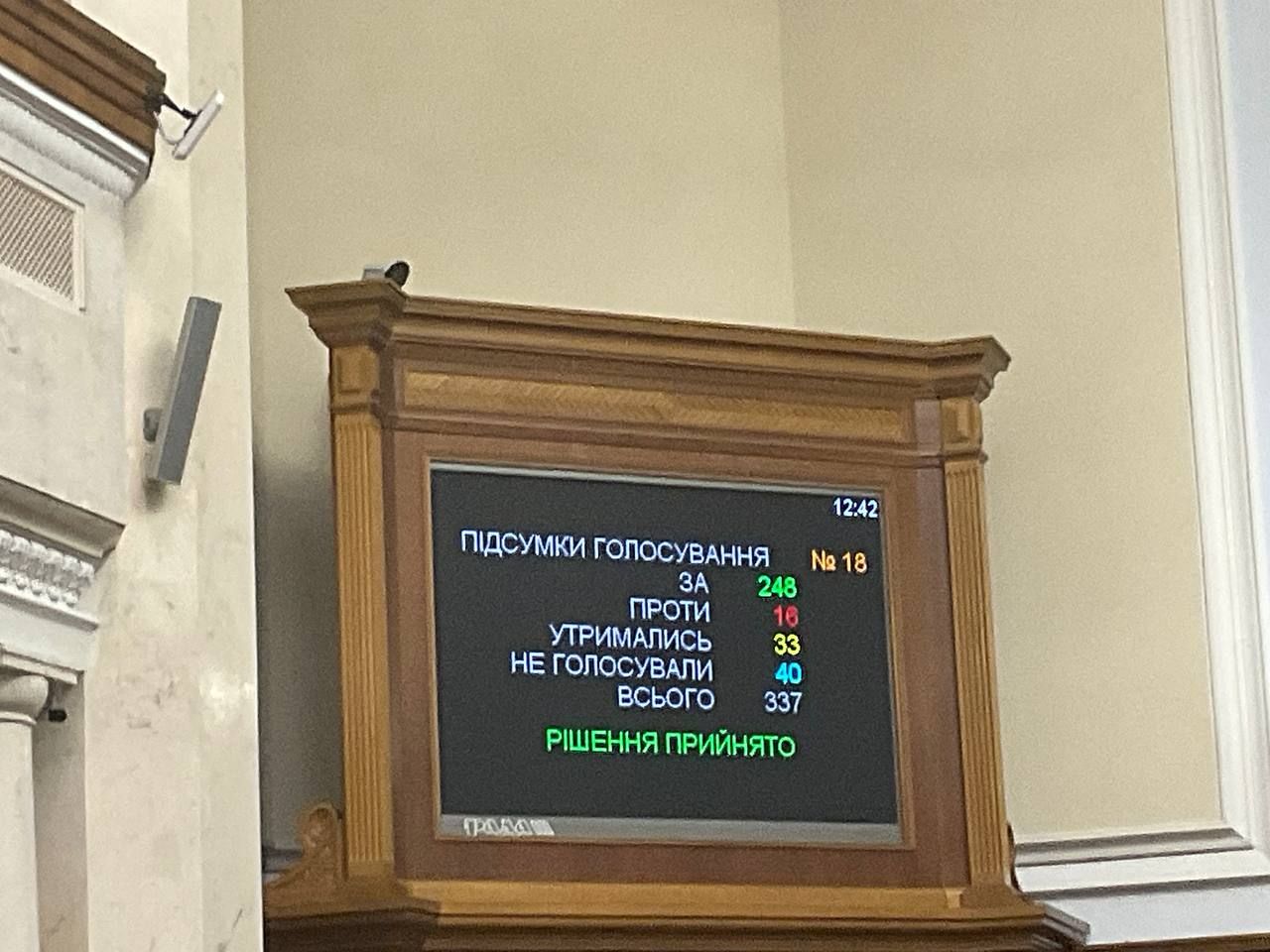 "ЗА" проголосували 248 народних депутатів.