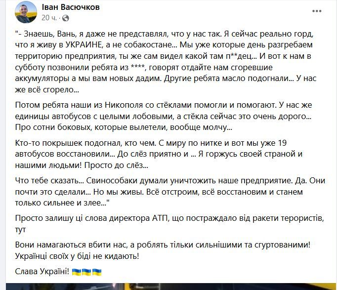 Як зазначив директор підприємства, це дорогий та непростий процес, але на допомогу прийшли люди з різних міст України. Історію від власника АТП опублікував на своїй сторінці спеціаліст департаменту транспорту Дніпра Іван Васючков.