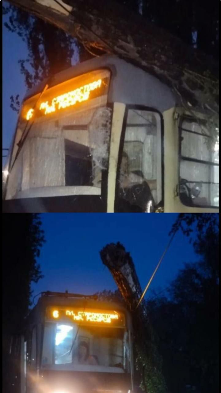 На маршруті трамвая №19 стався обрив контактної мережі через падіння дерева. Дерево впало на контактну мережу та вагон трамвая №6. Пошкоджено лобове скло.