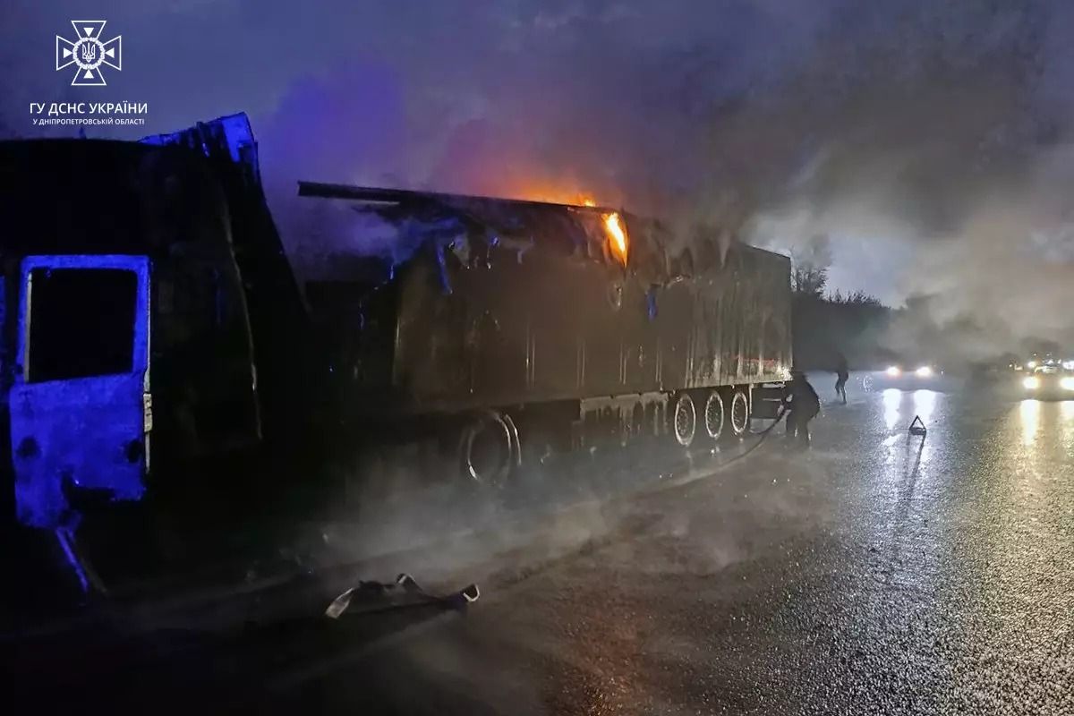 Влучила блискавка: на трасі Дніпро-Кривий Ріг палала фура (ФОТО)