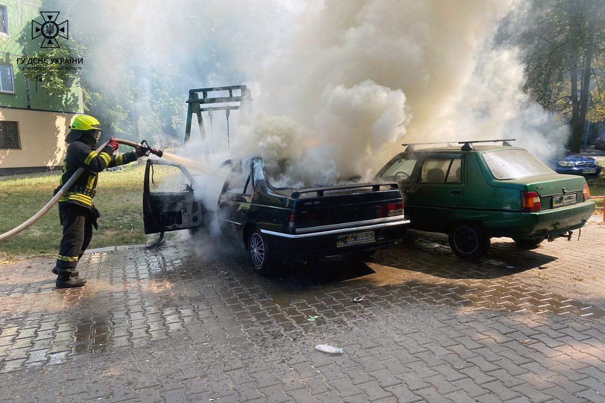 Вогонь перекинувся на інше авто: у Кривому Розі горіли Peugeot та ЗАЗ (ФОТО)