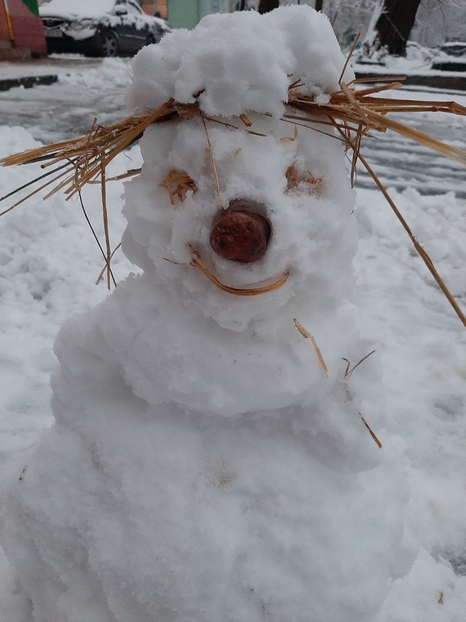 Якщо минулого року зі снігу ліпили бюстики Сталіна, то цієї зими на вулицях міста можна зустріти нову воєнну творчість. Дніпровські сніговики надягнули каски та форму ЗСУ та взяли в руки зброю.