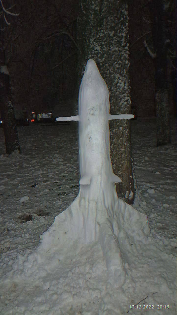 Воєнна творчість: у Дніпрі зі снігу зліпили крилату ракету (ФОТО)