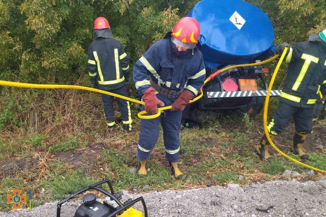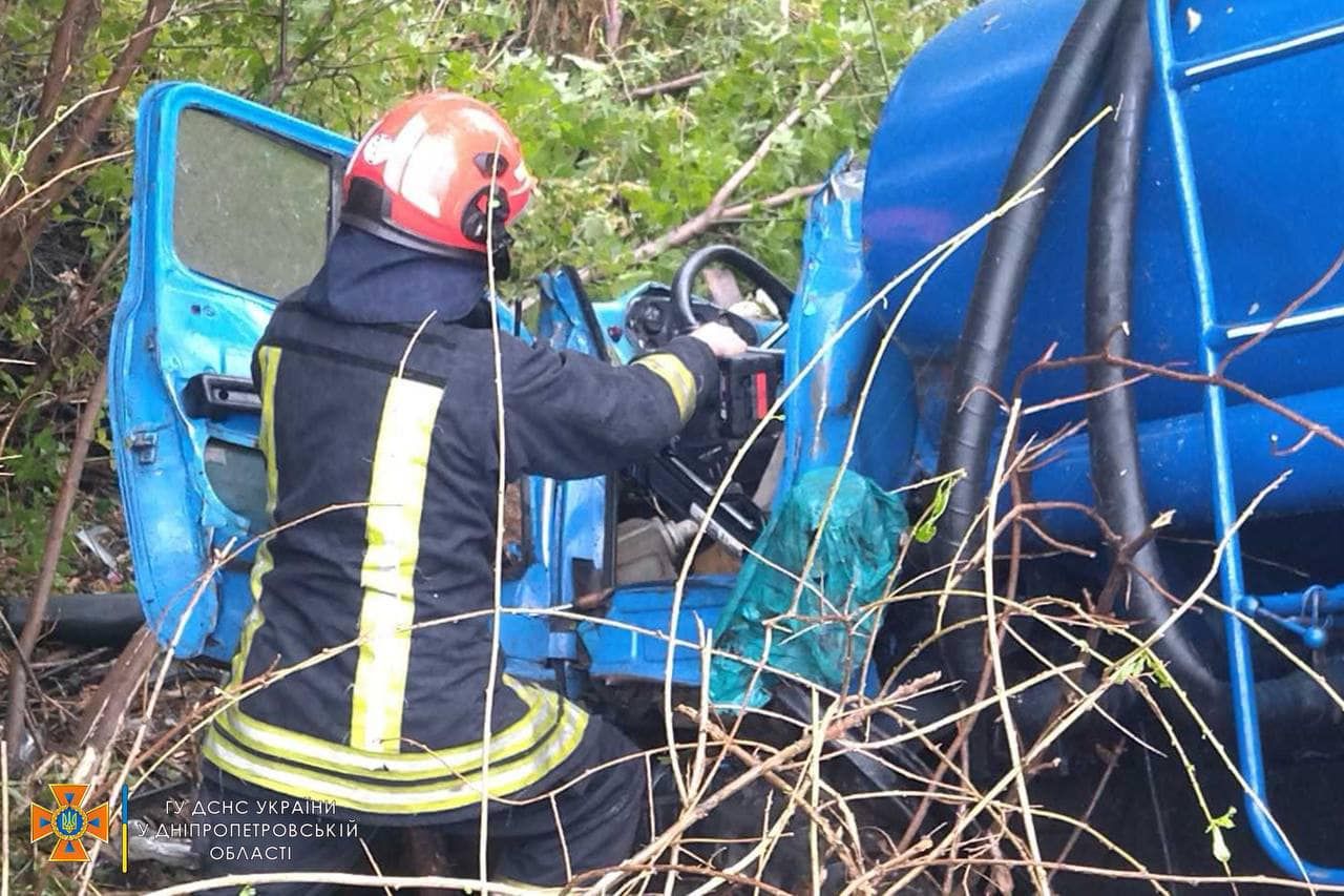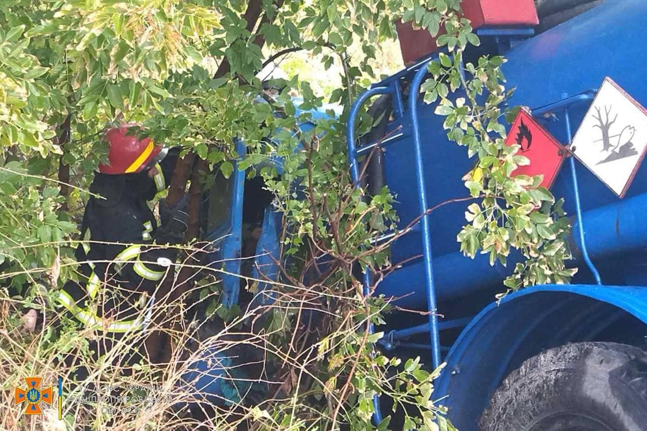Врізався в дерево і застряв: на Дніпропетровщині надзвичайники рятували водія бензовоза