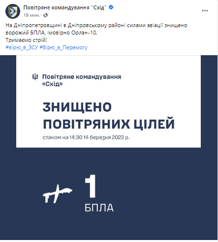 Пізніше цю інформацію прокоментували у повітряному командуванні "Схід".