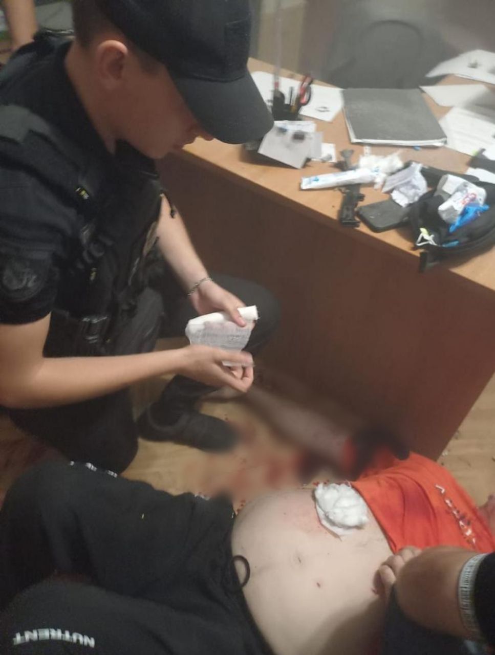 У результаті вибуху чоловік отримав осколкові поранення. Поліцейські надали йому домедичну допомогу.